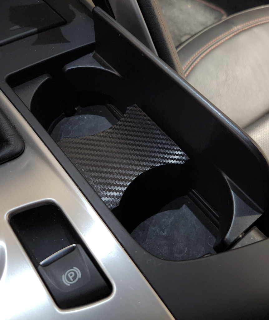 I was told that AFMedia released a new carbon fiber design. I was very happy with the original one i got a few years ago, so I thought i’d give this new version a try because I always wanted the cup holder clip to be in carbon fiber to match the rest of my dash. And im happy to say it fits great, holds up the bottles just like the first product but now with this cool pattern!